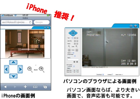・IPカメラでカメラ画像を記録・遠隔監視できる
