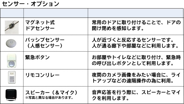 | ・各種センサーで安否確認 |